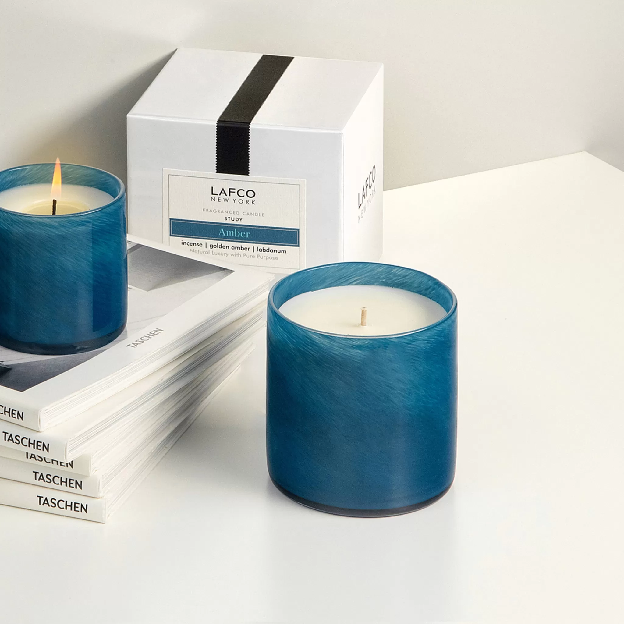 Smoky incense and warm labdanum bring a sensual glow to the rich, classic scent of golden amber with this one-of-a-kind candle.