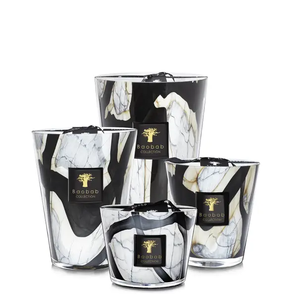 The scented candle is housed in an ornate, marbled glass jar, expertly hand-blown by the brand’s artisans. The flickering flames from the candle shine through transparent pockets of the marbled vessel, illuminating your interior spaces to create a cosy ambiance and inspire a tranquil atmosphere.