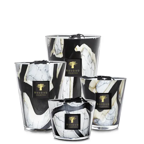 The scented candle is housed in an ornate, marbled glass jar, expertly hand-blown by the brand’s artisans. The flickering flames from the candle shine through transparent pockets of the marbled vessel, illuminating your interior spaces to create a cosy ambiance and inspire a tranquil atmosphere.