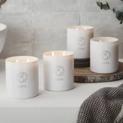 Aromas of Myrrh, creamy Sandalwood, homely Frankincense and floral Rose Geranium come together in a tantalising, alluring manner, caressing your senses and inviting you to lie back and unwind. The scented candle is encased in a sleek white jar, topped with an elegant silver-toned lid, destined to make a stylish statement wherever it is placed. The jar is adorned with the ESPA logo, finishing the candle in a minimalistic yet eye-catching manner.