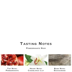 Create an alluringly sultry atmosphere with the Jo Malone London Pomegranate Noir Deluxe Candle. The darkly romantic fragrance is created by a cocktail of deliciously fruity and juicy Pomegranate, followed by delicate Casablanca Lily that offers a dainty juxtaposition of aromas. Images of meadows filled with fresh, powdery flowers and trees brimming with perfectly ripe, juicy fruit are conjured as soon as the candle is lit, allowing it to create a serene, calming atmosphere. Finished with rich, smoky Guaiacwood, the candle helps to soothe and uplift, while the playful burning of the wick offers a luxurious ambience.Â