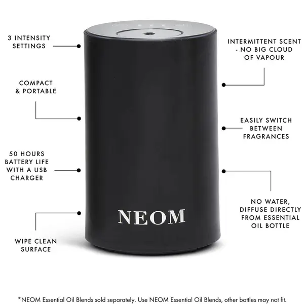 Designed for use with NEOM’s essential oil blends, the compact, battery-powered diffuser is perfect for spaces such as your bathroom, home office and even car, with the oil vaporising directly from the bottle without the need for heat or water.