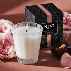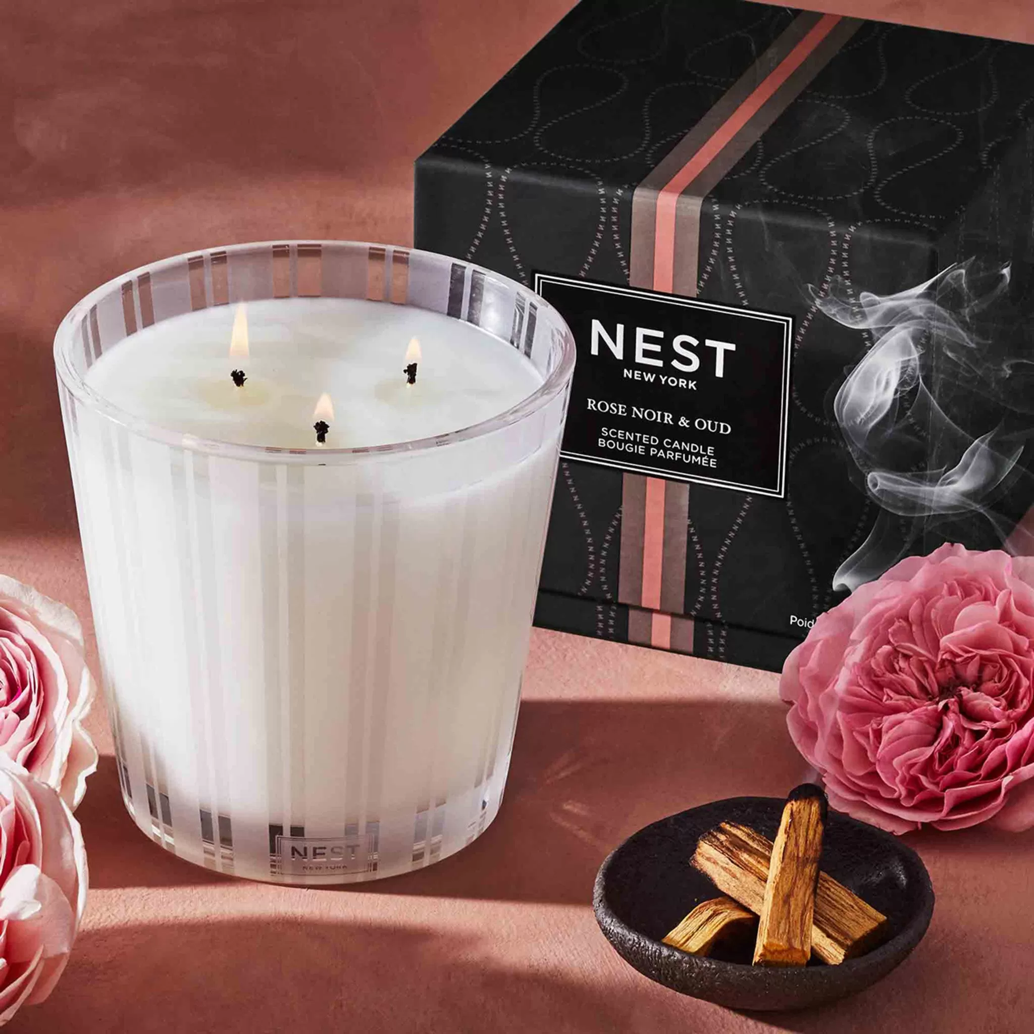 Rose de Mai and smoky oud are combined with hints of incense, black leather, and patchouli to create a sultry, floral fragrance