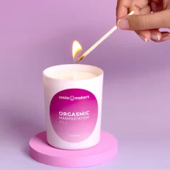 Create the perfect atmosphere for a steamy night in with the Smile Makers Orgasmic Manifestation of Sweaty candle.