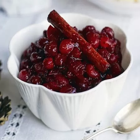 Tart cranberry, warm cinnamon, and spicy clove dappled with droplets of sweet mandarin orange.