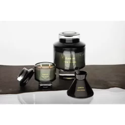 Inspired by the ancient ideology of reducing all matter to four bare elements, the medium-sized ‘Earth’ scented candle from the Tom Dixon Elements Candles collection features a mossy, evergreen scent, accentuated by delicate aromas of green leaves, mint and guaiac wood. The candle is housed in a glass container with a simplistic brand logo to the front.