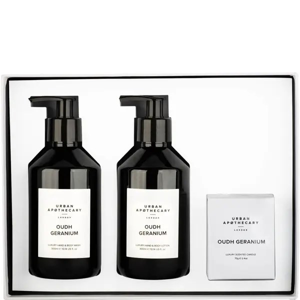 Urban Apothecary Oudh Geranium Body + Home Collection – 300ml Wash, Lotion And 70g Candle